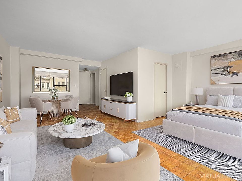 Overlooking a row of stone-clad townhouses, this sun-filled studio is the perfect place to call home.
