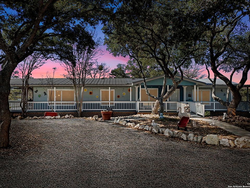 Waterfront on Medina Lake is where you will find this fantastic home ready to make your own. When the lake levels are up you will be greeted with beautiful Medina Lake just steps away from the large, covered wraparound deck. When lake levels are low you can enjoy the Hill Country views and the playground of the lakebed. Featuring many exceptional elements, such as an open floor plan and a spacious kitchen. The kitchen is home to a grand island and an abundance of cabinetry. Additionally, a window above the kitchen sink allows for easy viewing of the sensational scenery. The primary suite is lovely and hosts a luxurious ensuite bathroom with dual vanities and a large walk-in shower. With three additional bedrooms, this home offers ample space for all of your needs. The detached and oversized garage is perfect for all your outdoor toys and there is an RV pad with full hookups just outside of the garage. Take advantage of this great opportunity and schedule your private tour today!