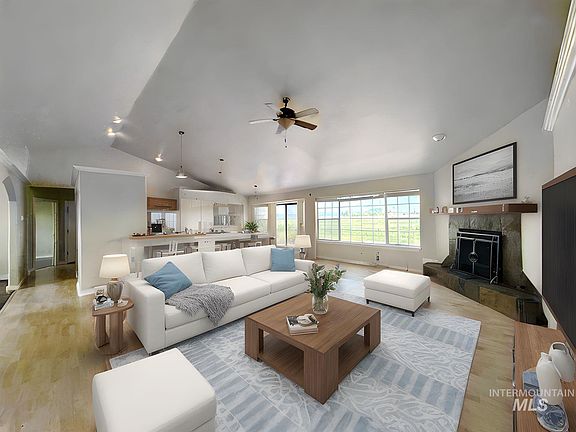 Experience the best of country living with this beautiful and spacious home, perfectly situated on over 2.5 acres with panoramic views of the northern mountains. Ideal for entertaining, the home features a large kitchen, a cozy living room with a wood-burning fireplace, and a formal dining area. The split floor plan offers privacy, with a generously sized primary suite that includes a huge walk-in closet, dual vanities, and a relaxing jetted tub. A bonus room above the garage—complete with its own bathroom and closet—makes an ideal guest suite, office, or den. Outside, enjoy long summer evenings barbecuing on the stamped concrete patio while taking in breathtaking sunsets. There’s ample space for RVs, toys, and gardening, plus a full sprinkler system already in place. No HOA restrictions—just open skies, freedom, and room to live your way. Search address in YouTube for video tour. Please Note: Photos that include furnishings are virtually staged.