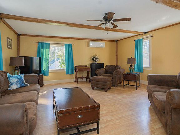Easy one floor living with spacious living room, lovely country kitchen, pretty dining room with decorative brick fireplace, 2 well-proportioned bedrooms and 2 baths.