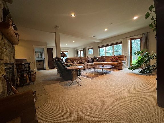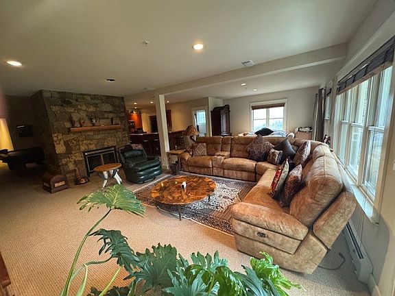 Stone fireplaceMountain viewsPrivate entrancesFresh paintEntertainment centerOversized windowsLush lawn area