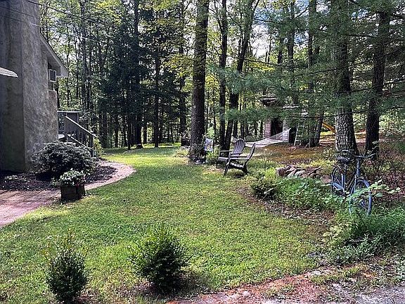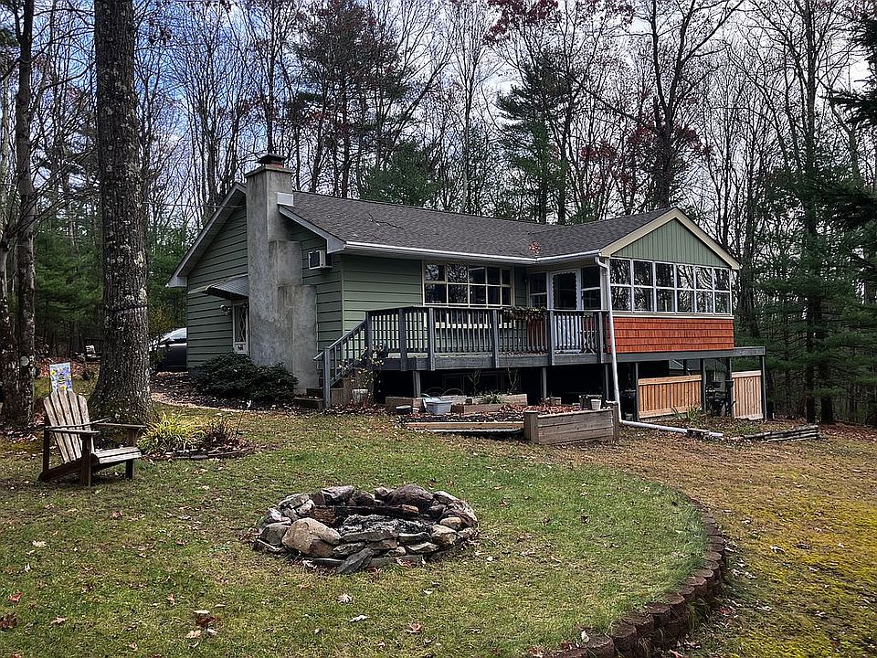 If you like privacy, you'll love the buffer that these 2.6 acres provide. Offering two bedrooms with a potential third, this home provides flexible living options. Hardwood floors in main level that boasts a large living room with stone fireplace and sun porch. Kitchen includes all stainless appliances with gas range, dishwasher and a cook’s island. Partially-finished daylight basement has its own stone fireplaces as well as newly-remodeled 3/4 bathroom. New roof was installed in 10/24. Convenient to shopping, PA Turnpike and several ski areas. Roads are private and maintained by Golf Drive Road Maintenance Association for $150/yr. For sale by owner. House is being sold as-is.