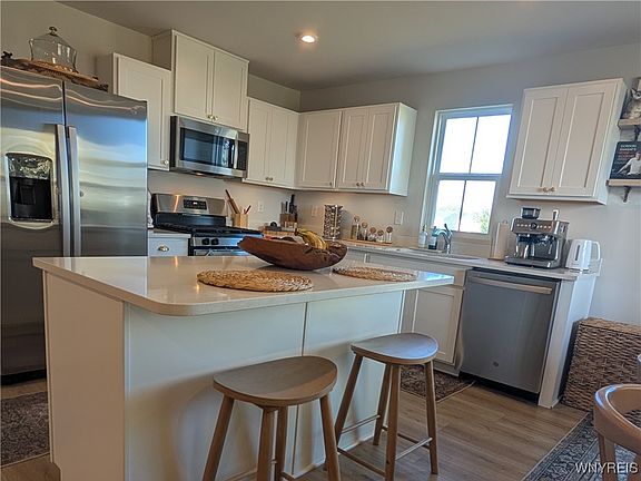 BEAUTIFUL ONE YEAR YOUNG, 3 BED, 2.5 BATHROOMS TOWNHOUSE IN A NEWER COMMUNITY. GRANITE COUNTERS, W/ BREAKFAST BAR, NEW APPLIANCES, WASHER DRYER INCLUDED ON 2ND FLOOR, 2 FULL BATHS UPSTAIRS, HALF BATH ON LOWER, CENTRAL AIR, TANKLESS ON DEMAND HOT WATER, FULL BASEMENT W/ EGRESS WINDOW, NEW HEATER=LOWER UTILITIES, VINYL PLANKING ON THE LOWER FLOORING. ALL FRESH AND NEW, BEAUTIFUL VIEW OUT THE BACK YARD AS WELL! JUST UNPACK AND ENJOY THE NUETRAL COLOR DECOR WITH ANY OF YOUR FURNITURE! NEAR BUS ROUTE/PUBLIC TRANSPORTATION AT THE END OF THE STREET, ALL HAMBURG AREA SHOPPING & 15 MINUTES TO BUFFALO BILLS STADIUM-APPROX. 20 MINUTES TO DOWNTOWN.