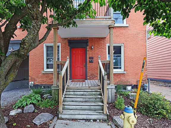 A smart DUPLEX choice here for buyer live-in, investment or to join forces with a friend to buy together, live separately. Located off Cumberland where Guigues is blocked off from Dalhousie you can enjoy a quiet traffic-free location with many similar well-cared for homes on the street. Enjoy the convenience of walking to Global Affairs, to the National Art Gallery, to boutique specialty delicatessen food and lifestyle shops, and cafes and restaurants while maintaining a comfortable distance from the tourist traffic! A handsome brick fronted exterior speaks to the continued exterior and interior maintenance of this building, with a single owner over the past 30+ years. The building was duplexed in 1982. Upstairs, SECOND FLOOR, the bright owner-occupied apartment awaits with a well appointed kitchen, a dining and living room and two bedrooms. The 2-piece bathroom includes the vanity sink and toilet. The 1-piece bathroom includes the shower together with the washer and dryer. Good closet space throughout. Tenants of 11 years (month to month) are on the MAIN FLOOR which has 2 bedrooms (one used as an office), kitchen, dining and living room and a 4-piece bath. There is an additional hall/walk-through space that could be useful for a desk or as a utility area. (Not included in Main Floor measurements, see floor plan). Lots of closets in this apartment. Washer and dryer are in the basement. Basement is lowish, dry and good for storage. There is a poured concrete foundation on the perimeter of the basement along the stone foundation walls. Both apartments enjoy outdoor living space; a large deck at the back of the main floor and front and back verandahs on the upper level. Parking is at the back of the building. List of improvements and rental unit expenses attached.