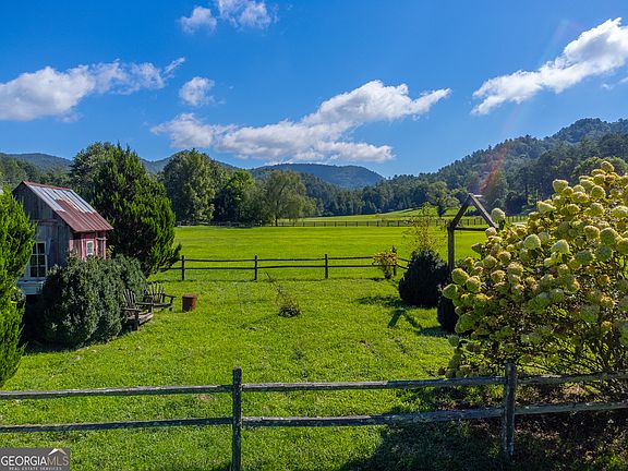Welcome to this 4 bedroom, 4.5 bath Country Manor sitting in the heart of Persimmon Valley overlooking beautiful pastoral and mountain views with creek and garden cottage. The wrap-around rocking chair porch introduces a foyer leading to a large living room with floor to ceiling fireplace, vaulted, beamed ceiling and wall of windows. A wet bar with icemaker and sink connects the living room to the separate dining room with seating for more than 12. The well-appointed kitchen offers a 6 burner Wolf stove with grill, Sub Zero refrigerator, Bosch dishwasher, granite countertops, a walk-in pantry, a breakfast bar as well as a separate dining area. A bright and open sunporch has a stacked stone fireplace, additional dining and access to the stone patio with built in grill and hydrangea framed English garden. The East wing off the kitchen area includes an office, half bath, laundry room, garden potting room and private upstairs guest quarters with window seat, full bath and bonus room. The west wing features the spacious owner's suite with triple French doors opening to the porch, double walk-in closets, a full bath with towel warmer, double vanities with makeup dressing table, jetted tub, separate shower and water closet. Upstairs invites you to 2 additional ensuite bedrooms with keeping room for relaxing. Extras include a two-car garage, lots of storage, distressed pine floors throughout, and antique heirlooms adding grace and character to this loved home. Furniture can be negotiated.