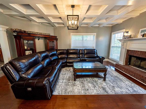 Welcome to 166 Hickory Ridge! This full-brick home in a sought-after Gadsden neighborhood offers 4 beds, 3.5 baths, a bonus room, and 3-car garage on 1.57 acres with over 3,500 sqft. Features include hardwood and slate floors, new carpet, fresh paint, coffered ceilings, and two living rooms with fireplaces. The kitchen boasts custom cabinets, granite counters, bar seating, and a walk-in pantry. The large primary suite has patio access, jetted tub, walk-in shower, and dual vanities. Upstairs bonus room adds flex space. Enjoy a peaceful backyard with a large patio—minutes from downtown and I-59!