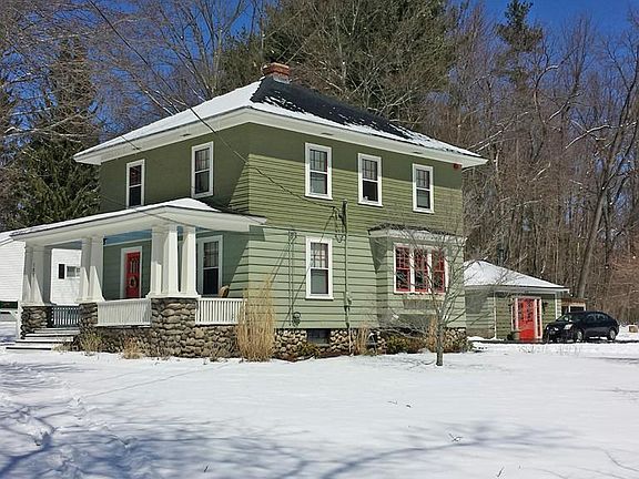 Charming Foursquare Craftsman style home, on 1.4 acres in sought-after school district. Sunny rooms, tall ceilings, superb woodwork detail and built-ins. Beautiful hardwood floors. Freshly painted exterior, cute front porch, new roof 2015 (50 year warranty). Newer back porch - enjoy view of large yard with gardens of flowers, berries and spots for annuals. Lot is partially wooded, with a trail to town land. Two car garage is a heated woodworking shop, but easily converted back, or into art studio. Large shed is 1/2 chicken coop - bring chickens, or use as shed. New energy efficient boiler 2014. House has original radiators, blown glass windows. New, Low-E version storm windows. High efficiency wood burning fireplace insert - 2012. Updated counter top and many fixtures. Walk up attic, for lots of storage. Set back nicely from street, long driveway with space to park several cars & turn around easily. Just a couple minutes to highway and Worcester. Beautiful town pool, and skiing nearby.