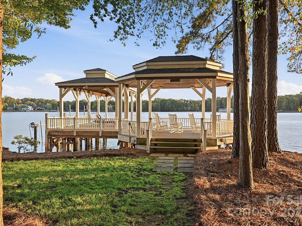 Experience Lake Norman living at its finest in this custom waterfront retreat on a private, gated peninsula. Designed by Don Duffy Architecture and built by renowned custom home builder Philip R. Thomas, this home blends timeless architecture, refined craftsmanship, and relaxed luxury. The open main level features heart-of-pine floors, expansive lake views, and seamless indoor-outdoor flow for effortless entertaining. A gourmet kitchen, inviting great room with stone fireplace, and lakeside screened porch set the stage for everyday living and memorable gatherings. Three main-level bedroom suites, including the serene primary retreat, offer comfort and privacy. Upstairs, a spacious bedroom suite and flex spaces provide room for guests or recreation. Outdoor living shines with over 300 feet of shoreline, double dock with boat lift, outdoor shower, and sweeping main channel views. Set on a private one-acre lot at the tip of Iron Gate, this property offers tranquility, sophistication, and the ultimate Lake Norman lifestyle—just across the water from Davidson College’s Lake Campus, minutes to Mooresville conveniences, and an easy drive to Charlotte.