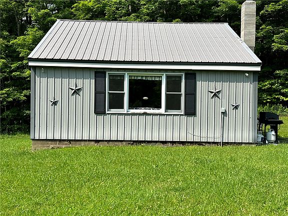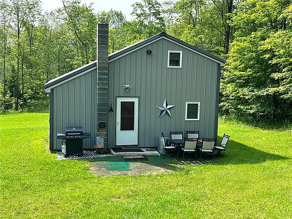 Looking for privacy and tranquility? This 26+ acres of land directly bordering 221.97 acres of NY State Land - with an additional 600+ acres down the road with a 90 acre State Pond to fish, kayak or canoe. Offers year round recreation hunting, cross country skiing, mt. bike, snowmobiling and a 9 mi truck trail. This property offers a home with easy maintenance roof is tin and so are exterior walls. Home has a 200 AMP electric service - baseboard electric heat and a wood burning fireplace as well. Some work may be needed to may it year round living. Nice size stocked pond, newer shooting range, 6 hunting blinds, 1 car det. garage with electric, two storage sheds and a trailer that sleeps 5 comfortably for guests (with pavillion style roof over top), there is also a stream on the property. All furniture and appliances stay - turnkey home. Call today for your appointment.