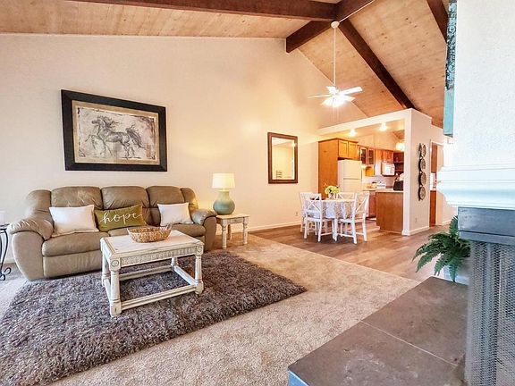 Welcome to this very nice, spacious, and comfortable condo. This can be your next home with soothing water views and high vaulted ceilings. As you walk in through the wide entry way you pass the kitchen and are greeted with high ceilings and lots of natural light making the living and dining area feel bright and airy. The kitchen is nicely upgraded, has plenty of counter space and includes the refrigerator, stove, microwave and dishwasher. Home provides 2 bedrooms and 2 full bathrooms, The primary room has its own private bath and access to the balcony with amazing water views. Home also includes, indoor laundry, a fireplace, laminate flooring and plenty of amenities such as a community pool, tennis court, and clubhouse!