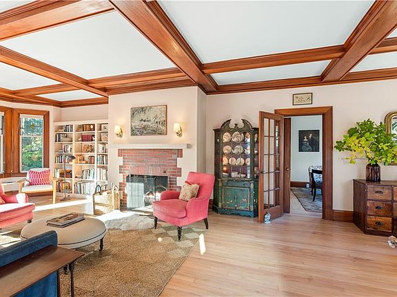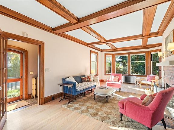 Enjoy cozy evenings in front of your fireplace in the 1928 Auger House, a 1-1/2 story red brick Tudor Revival style cottage with such original features as diamond-patterned windows, newly refinished oak floors, and period built-ins. The charming entry vestibule leads to a living/dining room with bay window and coffered ceiling that instantly transports one to another time. A breakfast room extends the original tiled kitchen with alcove stove. A ground floor bedroom with attached 3-season porch and a full bathroom complete the first floor. The second floor offers 3 more bedrooms and a full bathroom. The partially finished basement includes 400 SF of usable space, currently outfitted as a recreation room perfect for game nights, movies with friends, or binge-watching the latest season of your favorite shows. A plumbed sink and mini-fridge offer opportunities for entertaining. Nearby is the laundry room and several storage rooms. Just off the kitchen is a two-car garage with radiant heated floors. Located on Providence's popular East Side, you are within an easy walk of Hope Village’s shops and restaurants, Blackstone Boulevard, and the Summertime Saturday farmer’s market in Lippitt Park. Although you could just as easily stay home, enjoying a verdantly-landscaped double lot with koi pond.