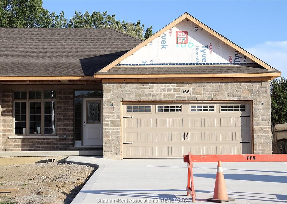 Under construction at 166 Lanz Boulevard a Ranch style home with a full basement with rough in bath. This home has a large common area including Kitchen, Dining and Living room, including a Primary Bedroom complete with a walk in closet and bath. There is also a 3 piece Bath on main floor. This property backs onto the Harwich Raleigh Public School forested environmental preserve area. This plan is proven for value and comfort for utilities costs and maintenance. Partial Brick with vinyl board and batten exterior. Double car garage, fenced yard and concrete allowance. This home has a cabinet, flooring, and painting allowance in Purchase Price.