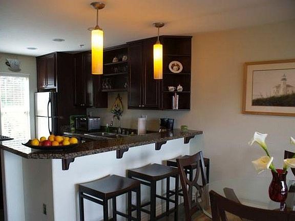 Ample dining area in living room, or use the breakfast bar. The kitchen has handsome quality cabinetry, tile flooring, granite counters, a refrigerator, a gas range/oven, a dishwasher, a disposal and a built-in microwave over the oven. The powder room is perfect for guests and very modern. The full bathroom upstairs features a tile shower over a tub and handsome cabinetry. The home has central heating. Two assigned tandem parking spaces in the common area garage. Stackable washer and dryer are located in the upstairs hall closet. Rent includes water, garbage, and sewer. NO SMOKE/PETS. 18 month lease. Currently occupied.