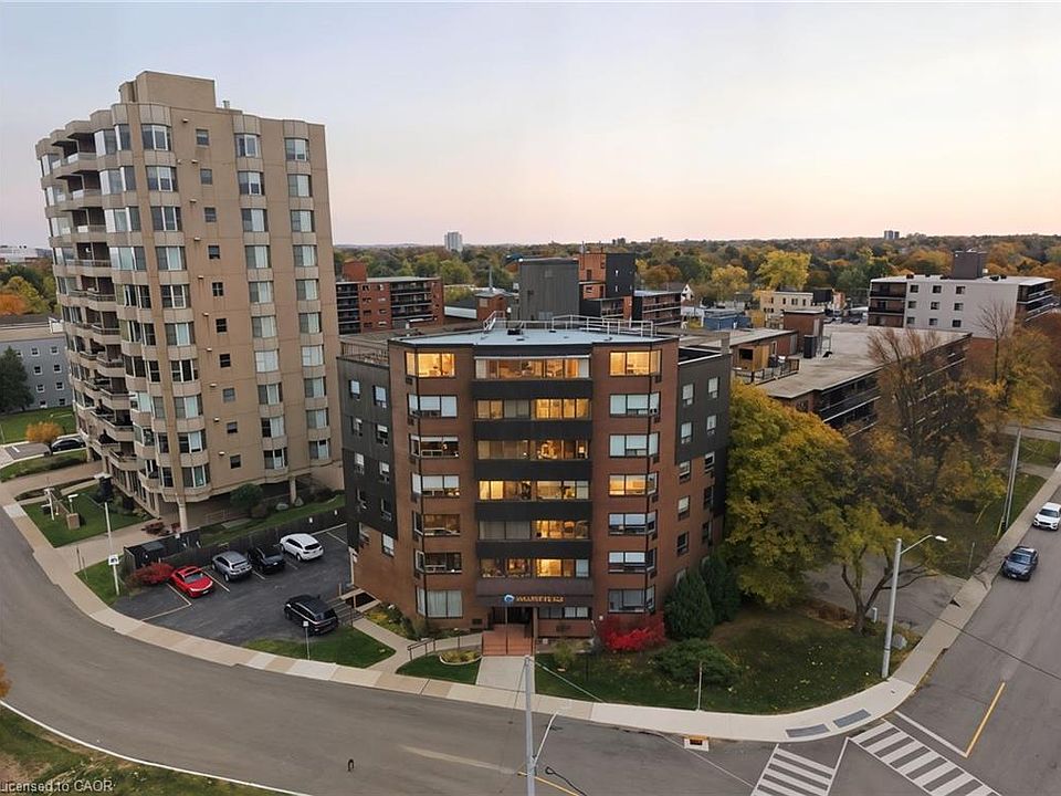 Welcome to Incline Place, a truly exceptional residence perched proudly atop the Wentworth Stairs. This spacious 3-bedroom, 2-bath condo offers approximately 1300 sq. ft. of light-filled living space with unobstructed, panoramic views of the city, Lake Ontario, and the Toronto skyline - you can even spot the CN Tower on a clear day! The open-concept layout seamlessly blends the living, dining, and kitchen areas, making it ideal for entertaining. The kitchen features stainless steel appliances and overlooks the main living space, so you’re always part of the conversation. Wall-to-wall windows flood the unit with natural light and showcase those breathtaking views. Additional highlights include engineered hardwood flooring, a versatile sunroom (ideal as a home office or cozy den), a designated parking spot, and a storage locker. Take the elevator to the rooftop and discover a stunning shared terrace featuring a large deck, pergola, and planters. The perfect spot for barbecues, summer gatherings, or simply relaxing while enjoying sweeping views of the city and lake. Located in one of Hamilton’s most prominent mountain brow communities, you’re steps from scenic parks, the Wentworth Stairs, and beautiful walking paths. A short stroll brings you to vibrant Concession Street with its shops, cafés, and restaurants, and Juravinski Hospital is just down the road. Experience the best of city living surrounded by nature and community charm at Incline Place