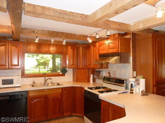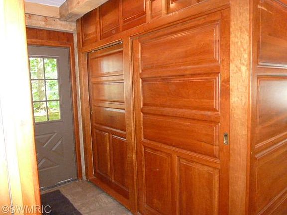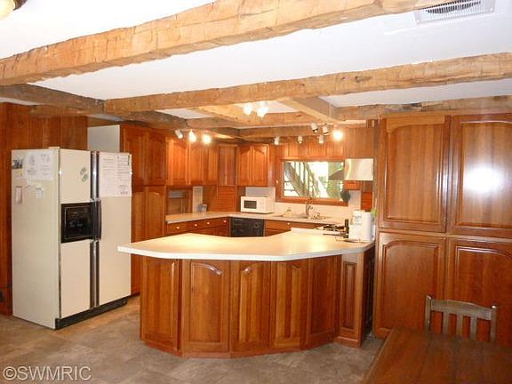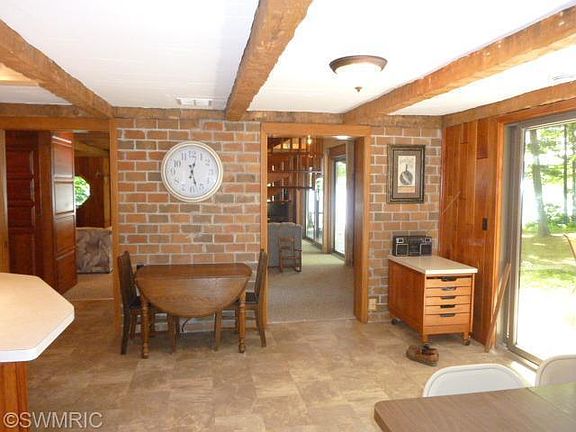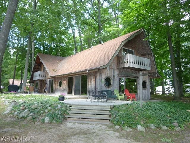 Listen to the Loons from this one of a kind Scandanavian Style chalet on a 1.3 acre wooded Lakefront lot with the most magnificent trees you've ever seen. 155 Ft of frontage on all sports Campbell Lake. Beautiful Sandy beach. Boathouse & dock at the water's edge. Large barn style garage with 2 overhead doors, large workshop area and 2nd floor loft. All sorts of room for work projects and storage. The original owner finished the inside in solid cherry with beautiful cabinets and solid cherry panels. Spectacular cherry spiral staircase to the 2nd floor. Spacious living room with lots of windows overlooking the lake and a pellet stove for comfort in the winter. Almost 2000 sq ft finished. New 90% efficient furnace and central air. Buy this for a fraction of the cost of being on Hamlin or Bi