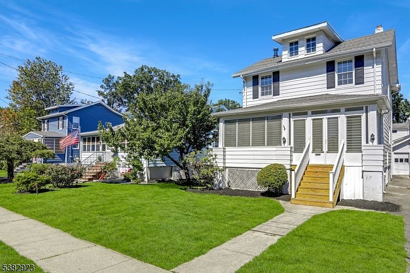 First time available, not in a flood zone, updated open and bright south side Cranford. Absolute show stopper with reimagined open floor plan off of enclosed front porch, living room dining room and spacious new kitchen with stainless steel appliances & upgraded cabinetry, second floor features 3 bedrooms with primary suite. Great location walkable to centennial village and across the street from bike path to Hillside Avenue School. Home was ripped to studs and replaced new for 2025, new deck off of dining room overlooks charming backyard an detached garage. plenty of space for storage here with large open basement & spacious attic! Surely not one to miss! Quick access to parkway, bus stop & Train station.