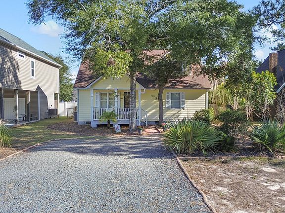 The official cottage of charm in Oak Island! This mostly furnished, unique coastal cottage is tucked among the trees in one of Oak Island's most adored areas. Inside, you'll find an open floor plan, cozy sunroom, ground-floor primary bedroom and bath, wainscoting and built-ins in the living room, plus excellent storage. Upstairs, relax on the screened porch and enjoy the coastal breeze. Outside, the fenced yard offers space to play, and the large outbuilding is perfect for storing all your beach and outdoor gear. Less than a mile to beach access—or under a 5-minute golf cart ride—via Middleton. With Oak Island's many town amenities and this home's flexible layout, it's an excellent option for an investment property, second-home retreat, or full-time coastal living.