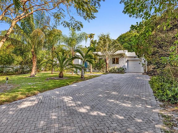 This beautifully remodeled 2/1 gem is nestled on a picturesque tree-lined street in highly desirable Miami Shores. Enjoy the spacious, oversized lot filled with fruit trees and ample room for a pool. The large driveway offers plenty of parking for up to six cars. Inside, you'll find a fully remodeled kitchen, stunning den that can easily be used as a third bedroom or office space, along with a one car garage. Total 1,408sq ft under A/C. Updated electrical and plumbing systems, along with full impact windows and doors, ensure modern comfort and safety. Don't miss this opportunity to own a piece of paradise with endless potential.