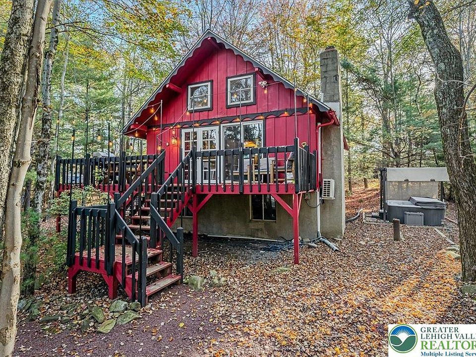Due to high interest, the calendar has been reserved for viewings from Monday, 10/20 at 11 a.m. through Tuesday, 10/21 at 3pm to ensure availability. Do not wait to see this active and proven Short Term Rental boasting AirBnB's ''Guest Favorite'' badge. Producing over $96K in gross revenue in 2024 and already $75K booked for 2025, this fully furnished and turn-key cabin is a true performer. Set across from Sunset Lake and backing to peaceful open space in the heart of The Poconos, this property captures everything guests love - privacy, charm, and unbeatable access to top attractions. It's 5 minutes to Kalahari Resort and Indoor Water Park, 10 minutes to Mount Pocono's shops, dining and Mount Airy Casino, and 15 minutes to Camelback Mountain for skiing, waterparks and adventure. Inside, the home blends rustic warmth with modern comfort - vaulted wood ceilings, exposed beams, a cozy fireplace and bright open kitchen that flows to French doors and a wraparound deck under string lights. Outside, enjoy a private hot tub, firepit lounge and wooded backdrop. Stunning open loft and main level bedroom provide flexible sleeping space, and the finished lower level adds fun with games and hangout zones. Low per-reservation community fees and strong rental history, this is one of the region's most investor-friendly cabins. Whether you're expanding your STR portfolio or looking for a personal retreat that pays for itself, this one checks every box. Schedule your private showing today!