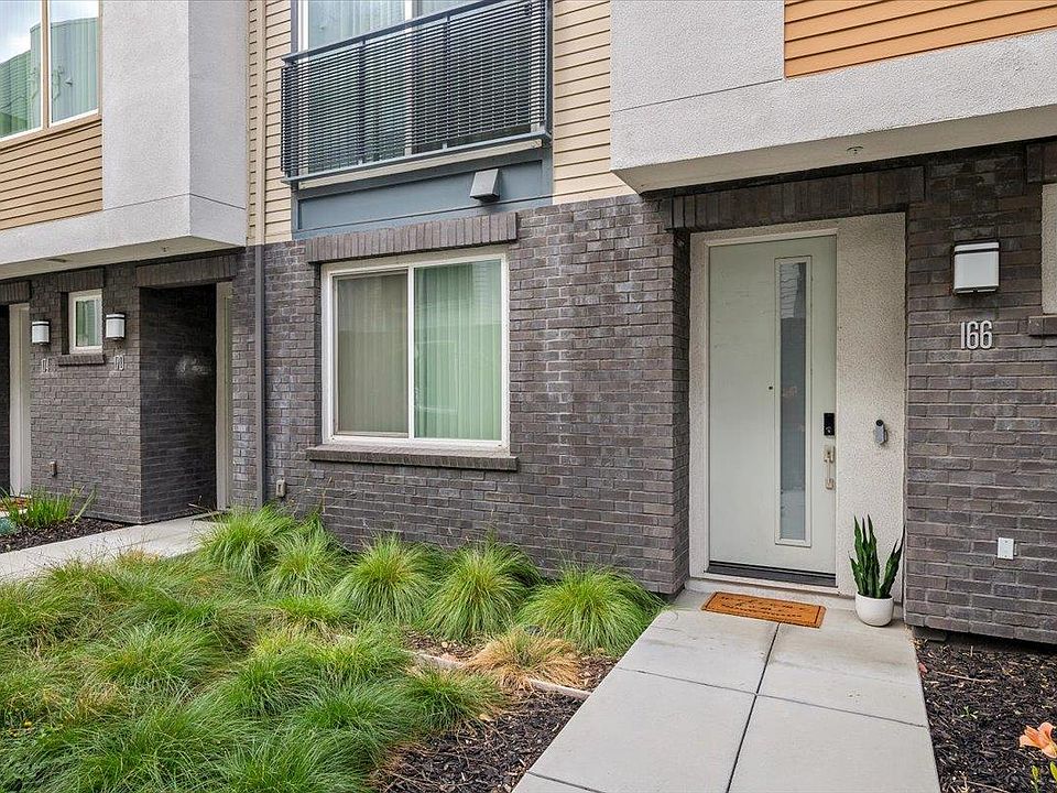 Welcome to 166 Nexus Loop, a beautifully appointed end-unit townhome built by Trumark Homes in 2019. Step inside to a welcoming entryway that opens to a stylish foyer and a thoughtfully designed half bath. The main level features an open-concept layout highlighted by a spacious kitchen with quartz countertops, stainless steel appliances, a gas range, and additional windows that fill the home with natural light that's perfect for everyday living and effortless entertaining. Upstairs, both the primary and secondary bedrooms are true ensuites, each offering tall ceilings and a serene, retreat-like feel. Throughout the home, you'll find recessed lighting, modern flooring, chic window treatments, and a highly functional floorplan that maximizes comfort. Additional upgrades include a water softener system, central heating and A/C, a tankless water heater, and oversized windows that enhance the homes bright, airy ambiance. Ideally situated just minutes from San Pedro Square, SAP Center, Caltrain, and major highways (880, 280, 87, and 101), this location offers unmatched convenience. Don't miss your opportunity to live in the vibrant heart of San Jose!