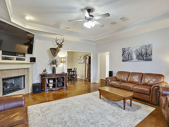 Beautiful home, well maintained in a great neighborhood. Country living close to the city. This house is located on a corner lot with side entry garage. It has a large back yard that also has a side double gate for access. The front porch with the rustic beams and full length, was made for those country evenings sitting outside. When you walk into the house you immediately notice amenities galore including stained concrete floors, beautiful corner fireplace, a lot of natural light and warm colors that draw you in. Once in the kitchen you will notice a large eating area with a great view of the backyard. The kitchen floor plan is open with tons of storage. To the right is the breezeway that leads to a convenient laundry room and two car garage with separate storage room. Walking from the kitchen into the Master Bedroom you are greeted with even more natural light shinning into a spacious master with detailed molding and a trey ceiling. As you enter the master bathroom/ master closet area you will notice how much thought went into the design and layout for your convenience and privacy . A separate garden tub and shower along with two vanities greet you as enter. There are two spare bedrooms on the opposite side of the house. Both spacious enough for large furniture and also have warm neutral colors. The covered patio outback invites you to share time with family and friends while you grill. The large back yard offers plenty of shade and privacy. This one wont last long. Call today to see this beautiful home. New Roof installed 05/13/2020!!