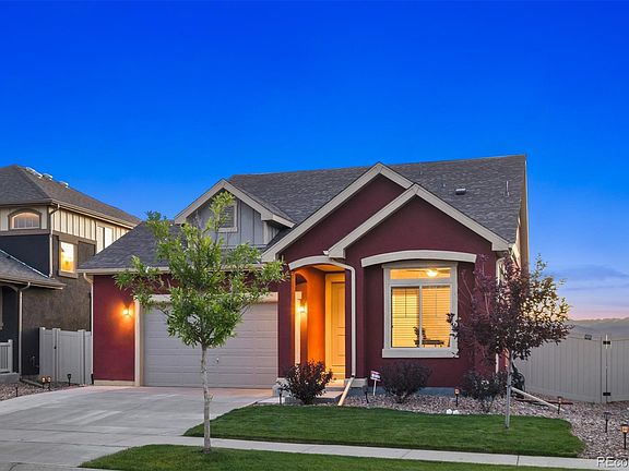 Enjoy "Million Dollar Views" for half the price! This beautiful, move-in ready home in Erie Highlands boasts low maintenance landscaping AND amazing mountain views from the main living space, the master bedroom the backyard, and even from the basement ! You'll love the inviting & bright open layout with stunning *NEW* engineered hardwoods floors throughout the main level. Main-floor master suite with, luxury bath, and walk in closet. Enjoy summer sunsets on your deck or large concrete patio. Home cooks will love the gourmet kitchen featuring SS appliances, gas range, beautiful cabinetry, large center island & walk in pantry. 4 Bedroom home includes desirable 2nd floor bonus room. Full, finished basement includes 4th bedroom, full bathroom and large family/bonus room and plenty of additional storage. Attention to detail throughout. Neighborhood has a private pool/club house, multiple pocket parks and trails. Soaring Heights K-8 School District. Make sure to put this on your list before its gone!
