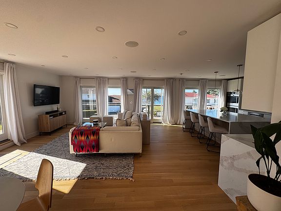 Open-Concept Living: A bright, airy layout with high ceilings, abundant natural light, and modern coastal decor.