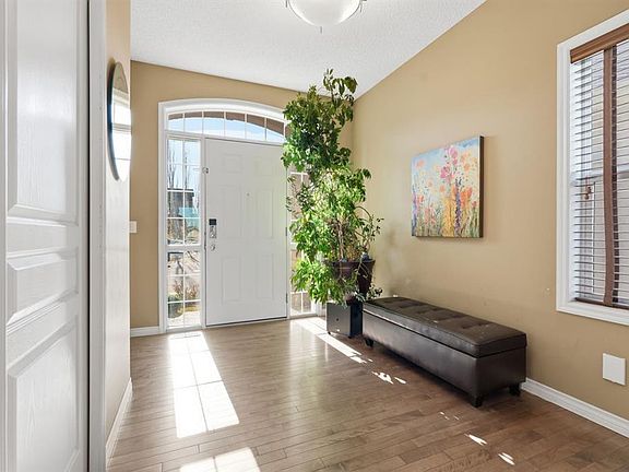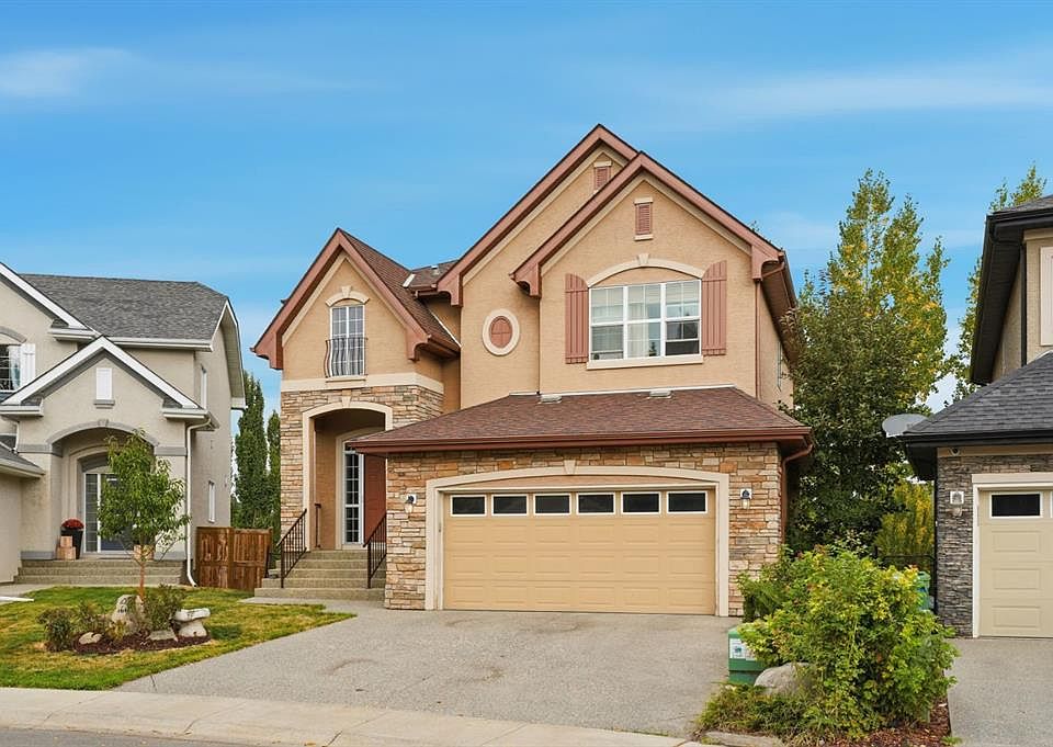 This isn’t just a house… it’s a Tuscan dream castle right here in Cranston!!! Welcome to your new home in the heart of Cranston - perfectly positioned just steps from the park, playground, ravine pathways, schools, and the community shopping centre. This exquisite two-storey walkout residence offers timeless architectural charm, warm natural materials, and expansive living spaces designed for both everyday comfort and elegant entertaining. As you arrive, the home’s exceptional street presence draws you in with its stone detailing and stately front entry. Inside, a grand foyer and open staircase flooded with natural light from the skylight above sets the tone for the entire home. The main floor features rich hardwood flooring and an open-concept layout centered around the gourmet chef’s kitchen-complete with stainless steel appliances, gas stove, smart fridge, maple cabinetry, granite countertops, an oversized island, and an enormous walk-in pantry that keeps everything beautifully organized. The kitchen flows seamlessly into the dining room framed by elegant stone pillars, with direct access to the full-width upper deck-a perfect space to enjoy morning coffee, evening sunsets, or gatherings overlooking your backyard. A private office with sliding pocket doors offers a quiet retreat for work or study, and the cozy living room with its stone gas fireplace completes the main floor with warmth and sophistication. Upstairs, the spacious bonus room enjoys a view toward downtown - perfect for movie nights or relaxation. The second-floor laundry adds convenience, while three bedrooms offer comfort for the whole family(all three bedrooms upstairs have walk-in closets). The primary suite is an absolute showstopper: soaring vaulted ceilings, a massive walk-in closet, and a spa-inspired ensuite with double vanities, a soaker tub, and a separate shower. From here, look out toward the park and enjoy glimpses of the mountains - a serene and picturesque retreat. The walkout lower level extends the living space with a large recreation area, wet bar, additional bedroom, and direct access to the covered patio and backyard. With 3.5 bathrooms in total, this home perfectly blends luxury and function. The garage is also over-sized. This is not just a home - it is a lifestyle. Warm, inviting, elegant, and designed to be enjoyed. Make this Tuscan dream yours today - BOOK YOUR SHOWING BEFORE IT"S GONE!!!