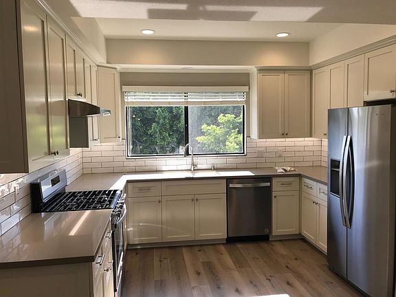 Beautiful condo completely remodeled with remodeled bathrooms & kitchen with stainless steel appliances. The kitchen has high end cabinets with soft close drawers and quartz countertops. This condo has TONS of storage space. There is LED lighting throughout the unit and the kitchen and dining room have beautiful high end designer lighting fixtures. Attractive flooring throughout the unit as well as window coverings. The unit is pre-wired in the living room and both bedrooms in order to easily install your flat screen televisions. There is a formal dining room with a wet bar. The living room is very large and open. The condo has an excellent floor plan to maximize space. There is a balcony facing Hayworth Street with 2 sets of french doors. There is also a side by side washer and dryer. Location, Location, Location! This condo is literally only steps out of your front door in order to walk from Trader Joes, Mendocino Farms, and Peet's Coffee that are directly next to this condo complex. It is also directly across the street from Farmer's Market. Move in and enjoy the luxury of a clean and completely remodeled condo in a fantastic area. This is a HUGE SPACIOUS UNIT! Tenant responsible for electricity and gas
