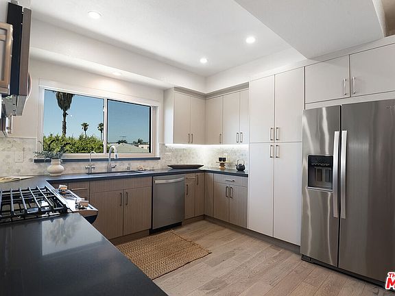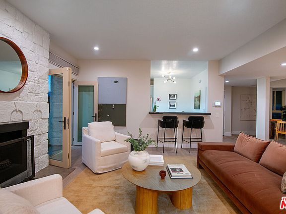 Rare opportunity to own a completely remodeled and extra spacious end unit condo right next to world class shopping and restaurants on 3rd St, Beverly Blvd, Fairfax Ave, and The Grove. Easily one of the most accessible locations in the city. The entryway opens to the oversized dining room on the left, the eat-in kitchen on the right, and the sun-drenched living room ahead with high ceilings throughout, all connected in an open floor plan perfect for hosting family and entertaining friends. The kitchen offers ample prep space and abundant cabinetry, including extra storage space in the built-in breakfast nook. Fully updated with newer appliances, a picturesque window over the sink, and a robust water filtration and softening system under the sink. The kitchen's bar passes through to the living room, which features a working gas fireplace and a pair of custom, dual pane French doors that lead out to the west-facing balcony with views stretching from the treetops on the street below, to Culver City, to the Hollywood Hills, providing the perfect backdrop for sunset-lit evenings. Two large walk-in closets provide plenty of extra storage space. The well-appointed primary suite provides lush green views of foliage, a walk-in closet and a sliding door closet both complete with built-ins, and a luxurious primary bathroom with a walk-in shower with bench, separate lavatory area, and dual sinks split by a corner makeup vanity. The guest suite has a remarkable amount of closet space and a south-facing window overlooking 3rd St, providing tons of natural light all day. The hallway between bedrooms includes the guest bathroom, side-by-side laundry with built-in shelving, and both base and hung cabinetry with countertops, all matching the cabinetry and countertops from the kitchen for a complete and cohesive aesthetic (and even more storage!). Remodeled with central A/C, new electric panel, custom dual pane Anlin energy efficient windows and doors, wide plank engineered wood floors throughout, and tandem parking spots in the most pedestrian-friendly location in Los Angeles.