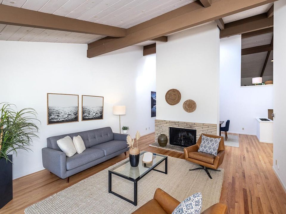 Come see and enjoy this stunning townhouse, overlooking the Sharon Heights Golf Course. Loads of natural light with soaring open beam ceilings and a large private balcony. Desirable floor plan featuring 2 spacious bedrooms and 2 full bathrooms, plus a loft style family room, which can easily be reconfigured to a 3rd bedroom.