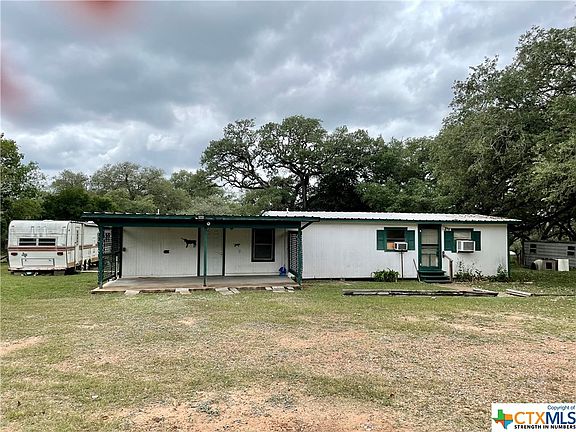 Whether you're looking for a peaceful weekend getaway or to downsize and simplify your lifestyle, this rustic cabin is a rare opportunity in the lovely, secluded Canyon Estates amidst the beauty of nature, and just 7 minutes from historic Goliad. Although there are no dedicated bedrooms, there are 2 rooms that could easily function as such, one of which with an attached bathroom (non-functioning at this time). The acreage, in addition to a plethora of lovely, mature oak trees, is fenced and cross fenced with 4 water spigots around the property, and an area which was previously used for Barbado sheep, along with a separate shop and storage container under one roof, an 8'x16' Morgan building, and a non-functioning travel trailer that Sellers will leave or remove, at the Buyer's discretion. This property is just waiting for your special touch and imagination. NOTE: black utility trailer is excluded; water well was rebuilt in 2021; and septic system was pumped in 2017. Property is being sold AS IS.