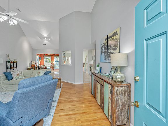 With the rear of the home facing south, the interior boasts a lot of natural light providing a bright and open ambiance. A ranch style home with a large FROG, this floorplan has a comfortable and open flow. Facing the pond, the primary bedroom has a tray ceiling, walk in closet and ensuite bathroom (boasting a jetted tub). The spacious kitchen with stainless steel appliances, upgraded cabinetry and coordinating stone countertops adds to the luxurious feel. A FROG over the two car garage is a huge bonus (possibly as a 4th bedroom)! Hardwood floors, vaulted ceilings, and a gas fireplace some of the wonderful features. Open deck with built in benches and retractable sun shade off the dining/ kitchen area lead to the lovingly tended yard filled with butterfly attracting flowers and plantings Inviting Al fresco meals by the pond or cocktails with friends, make this home is a gem. The community amenities include a boat ramp, community dock, playground, and many ponds. Situated in a tranquil neighborhood with close proximity to schools, beach, and downtown Charleston, the commutes are never too long.