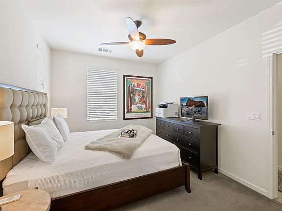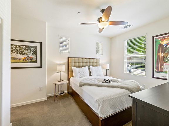 Absolutely gorgeous Montage townhouse nestled amongst acres of vineyards in the Livermore wine country. This magnificent 2 bedroom, loft and 2 1/2 bath property is a designer's dream come true with every possible upgrade imaginable. The spacious loft currently serves as a 3rd bedroom. It could also be used as an office or bonus room. Dream chef's kitchen with granite countertops, designer tile backsplash, stainless steel appliances. Range has a gas cooktop and electric double ovens. Custom upgraded cabinets. Six foot island has seating and storage. Adjacent is the spacious dining area. Gorgeous tile floors. Bedrooms have carpet. This is a corner unit with natural light streaming through the home. The balcony off the dining area is perfect for your morning latte. A raised sitting area off the living room is great for end of day Cabernet and a good book. Elegant master suites on first and third levels, 3rd level master suite also boosts a walk in closet. All bathrooms have slab countertops. MBath shower walls are full slab material. First floor has main entry, indoor laundry, a master suite and access to the 2 car tandem garage. This beautiful property is absolutely turnkey. It's gorgeous! You will not find another property like this on the market. Hurry, it will not last!!!