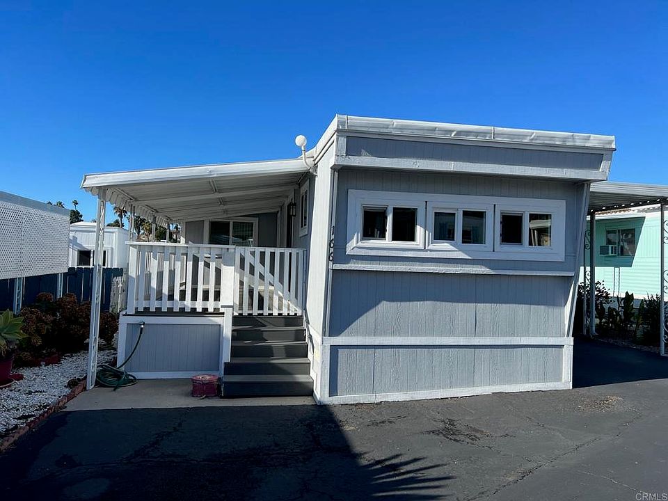 Come live near the coast and experience the ocean breezes and easy access to freeways, shopping and of course, the beach!Quaint manufactured home in senior park in Oceanside just steps to the pacific ocean. 1 Bedroom, 1 Bath with laundry area inside the house. Remodeled kitchen and bathroom. Handicap access to back door plus a private patio area in the back. Shed included. Complex has a club house and a pool for the residents of the park.
