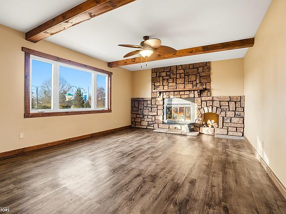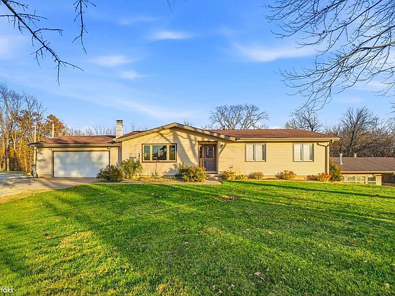Escape to peaceful rural living on 1.81 acres just outside Terre Haute with this spacious ranch-style home offering 1,300 square feet on the main level plus a full walkout lower level. The main floor features three bedrooms, including a generous primary suite, along with fresh flooring and paint that give the home an updated, welcoming feel. A deck off the kitchen overlooks the expansive backyard, and a separate gazebo adds the perfect spot for outdoor relaxation. The walkout lower level is mostly finished and packed with potential—just add new flooring to make it shine. This level includes a second kitchen complete with a huge bar and industrial sink, ideal for hosting gatherings. There’s also a standout bonus space with multiple windows overlooking the backyard and a built-in industrial smoker. With its own heating and cooling system plus a cozy wood-burning fireplace, it’s the ultimate hangout or hobby spot. Rounding out the property are both an attached garage and a detached garage/workshop, providing plenty of room for storage, projects, and equipment. A rare opportunity to enjoy space, privacy, and unique features—all within minutes of town.