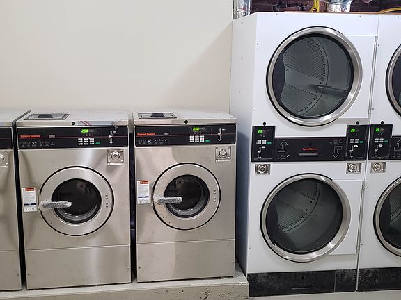 High ceilingsRenovated coin-operated laundry roomLarge windows