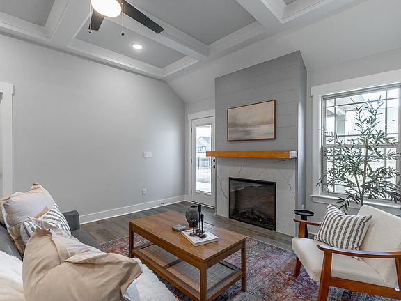 New construction one-level townhome in gated community with yard maintenance included! As you step inside the entry you'll find the guest bedroom and full bathroom right up front, providing separation from the master suite. Take a few more steps into the wide open living room, dining area and living room with gas fireplace, coffered ceilings and hardwood floors. The kitchen features a large eat-up peninsula, stainless steel appliances and beautiful white counter tops. The spacious master suite has a tray ceiling, double vanity, walk-in tile shower and walk-in closet. Outside you'll find a nice sized covered patio with uncovered grill space. This unit also features a laundry with cabinets for extra storage, a one car garage and oversized driveway with room for 2 more vehicles. Upstairs you'll find a large attic for storage without having to climb a ladder! Sunset cove is a gated community where the HOA handles the yard and is located just minutes to shopping, dining and health care in East Ridge or Fort Oglethorpe!