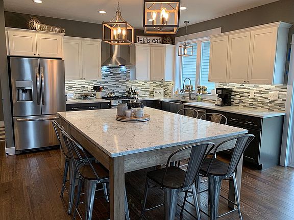 This custom built home in Aspen Estate of NortonShores is located on a corner lot and is for sale with adjacent lot that is landscaped and finished with stone paver fire pit! Floor plan features open concept on the main floor with a large master suite, large kitchen with large center island that seats 6. upstairs has 3 bedrooms and 1 full bath. The basement is finished with large family room, bedroom and playroom. Enjoy this home with HOA with pool and clubhouse! Lot next door is available as well can bundle for 659,000.