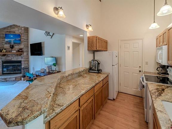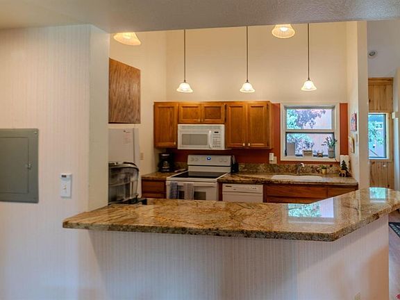 Mountain Retreat with Exceptional Views & Modern Upgrades – Minutes from Purgatory Resort. Welcome to Unit 302, your turnkey mountain getaway just 1 mile from Purgatory Resort and 30 minutes from Silverton. This light-filled, two-story condo offers some of the best views in the complex, with vistas of Twilight Peak, Hermosa Cliffs, and Engineer Mountain from your private balcony. Inside, the open living area features vaulted ceilings, beautiful aspen accent walls, and a stone-surround wood-burning fireplace—perfect for cozy mountain evenings. Large sliding glass doors lead to the covered balcony, ideal for morning coffee or sunset views. The kitchen boasts granite countertops, plentiful storage, a pantry with an optional lock for securing personal items, and a breakfast bar for extra seating. A new stove (2024) and brand-new water heater (2025) provide added peace of mind. The main level also includes a spacious bedroom with a large window framing the mountain scenery, a full bath with double sinks and walk-in shower, plus in-unit washer/dryer. Upstairs, a skylight above the private master suite invites nighttime stargazing. This retreat includes a bathroom with double sinks and tiled 3/4 shower, a charming window seat, and a walk-in closet—large enough for personal storage or an additional sleeping area with the included twin bed. Smart home features include Mysa smart thermostats, a Schlage smart lock, and secure storage for cleaning supplies. A brand-new Starlink internet system (high value) ensures high-speed connectivity, perfect for remote work or streaming. A dedicated workspace with ultra-wide monitor, Bluetooth keyboard, and mouse is included. Additional highlights: • New wall-mounted Roku TV in the living area • Fully stocked with linens, housewares, and essentials—ready to rent with excellent Airbnb history • Optional bear/cabin-themed décor, artwork, and cleaning supplies available • Large storage closet with lockable option • Beautiful courtyard and grounds with easy access to hiking and biking trails Whether you’re looking for a personal mountain escape, a high-performing vacation rental, or both, this condo offers comfort, charm, and unbeatable access to year-round adventure—all in one stunning location.