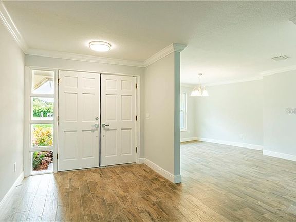 FULLY REMODELED! This must-see 4 bedroom 2.5 bath 2 car garage property has been professionally designed and remodeled with high-quality inside and out. The interior features continuous wood look tile flooring throughout, two living rooms, a huge kitchen with brand-new Samsung stainless steel appliances, all-wood cabinetry, high-end granite countertops, and contemporary glass tile backsplash. The master suite features a private corridor leading into a walk-in closet and huge en-suite master bath with double vanity, private water closet, and luxurious tiled shower with a water tower fixture. All bedrooms throughout the home are oversized and adorned with ultra-resistant wood laminate flooring & crown molding. Some more key upgrades include a BRAND NEW ROOF (2019), NEW DOUBLE A/C (2019), NEW WINDOWS throughout (2019), RESURFACED SWIMMING POOL (2019). All work has been completed by a top-rated general contractor and inspected and approved by the city. As if it couldn't get better, this home is located just under 2 miles away from the water, golf courses, beautiful downtown dunedin, and more. NO FLOOD INSURANCE and NO HOA FEES! Opportunities like this are few and far between, don't regret missing out on this dream home. Call today to schedule your private showing!