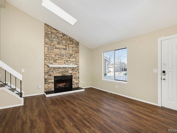 Beautifully maintained both inside & out, this move-in ready home in Aurora's Tower Triangle community offers easy living in a great location! A charming front yard with a white fence leads you into a welcoming, light-filled floor plan accented with skylights, vaulted ceilings, floor-to-ceiling stone fireplace and newer vinyl plank flooring. The cheerful dining room, with sliding door to the backyard, flows right into the galley kitchen, where you'll find brand new stainless steel appliances, modern tile backsplash, and sleek granite countertops. Two desirable main-floor bedrooms and a charming full bath, with updated tile, complete the main floor living. Upstairs features a spacious bedroom with a private bathroom entrance, fully updated bath, and a loft with a closet, making it a great space for an office, home gym, or even a 4th bedroom. New exterior paint and a large backyard that backs to Triangle Park, so no neighbors behind. Quick possession and 12 month home warranty included.