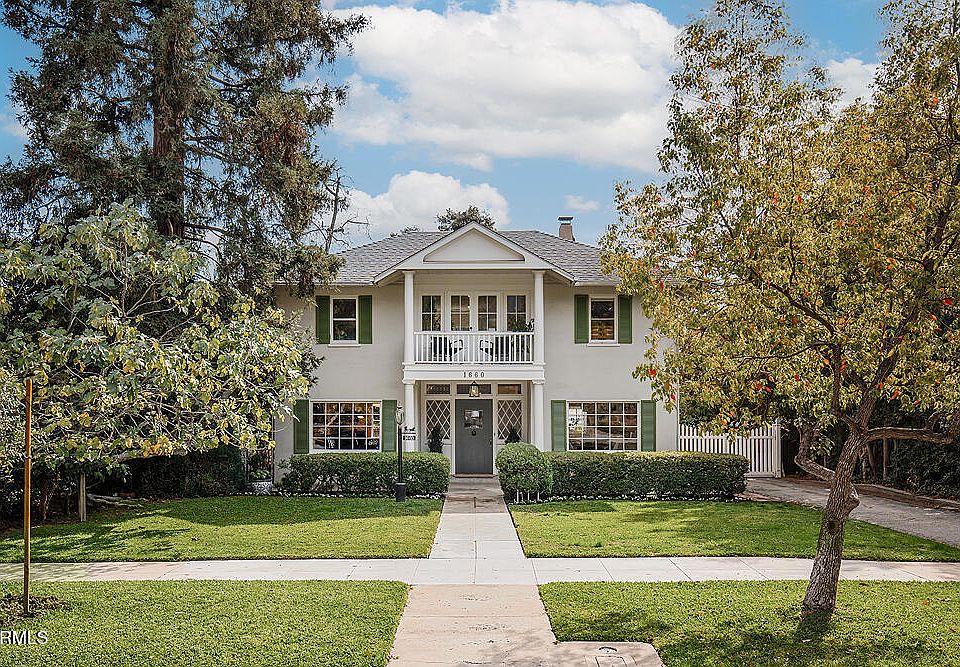 This classic 1910 Southern Georgian Colonial with 4 bedrooms and 2 bathrooms is a standout in Pasadena's northeast Jefferson Park, Pasadena Heights neighborhood. With hardwood floors throughout, the home boasts a welcoming formal entry area with an original two-sided staircase and unique banister beckoning you upstairs.To the entry's left a traditional living room with a large front window, fireplace and built-ins. To the right of the entry an oversized dining room with stately charm. Through the dining room discover a cheery green and recently updated kitchen with marble countertops and backsplash, stainless steel appliances and large under-mounted basin sink with ample lighting and a unique pass-through back to the dining room. Just off the kitchen a separate breakfast room with French doors provides an abundance of light and access to the backyard while also allowing you to round back to the living room or quickly upstairs. Beyond the kitchen and breakfast room find a secondary bathroom and laundry-mudroom combo.Upon ascending the stairs a large picture window greets you at the top with tranquil views of the backyard. Turn to discover an expansive second-floor landing with built-in bookcases. This mezzanine-like space could double as a den, library, office, retreat or media space. Off this bonus area find 4 bedrooms and an updated full bathroom--don't miss the amazing front balcony--an ideal place to enjoy morning coffee or evening cocktails while surveying community happenings from your high-up perch.The over 9,000 square foot lot offers a variety of fruit trees and garden areas--not to mention your own stoic redwood that you can admire from your front yard and porch.The home's attic and sizable basement with exterior access offers ample storage--along with an oversized two-car garage with front or rear alley entry--a rare feature for Pasadena homes.Own your own piece of Pasadena heritage in this incredible, fun and inviting neighborhood just moments from a variant of city and recreational activities. 1660 Las Lunas welcomes you home with every return.