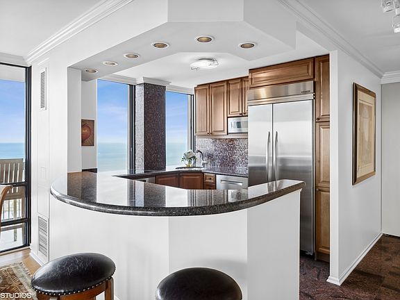 Fabulous opportunity to own this impressive and unique 41st floor unit. Enjoy expansive city and lake views while living across the street from Lincoln Park and walking distance to Wells Street in Old Town! This thoughtful combination of 3 units created a 2450 sqft. property featuring 4-bedrooms, 2 baths, living room, family room, dining room, climate controlled 900 bottle wine cellar, and tons of storage. The primary suite is a true respite from the day easily accommodating a king-size bed and a luxurious ensuite bath with steam shower. Your dream walk-in closet awaits with completely custom storage and a vanity with a makeup sink. Panoramic views from ALL windows to enjoy your unobstructed sunsets. The north balcony off the dining room showcases the Lincoln Park Zoo and Lake Michigan. The west balcony features the city skyline and gorgeous sunsets and is a wonderful addition to the 3rd bedroom/office. This full amenity, financially sound building features 24-hour door staff, fitness center, outdoor pool, newly remodeled rooftop deck, onsite dry cleaners/receiving room, attached garage and much more. In-unit laundry now allowed! See broker remarks for more details.