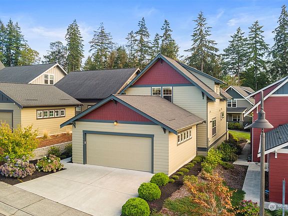 Beautiful craftsman style home in the desirable Snowberry Bungalows Community. Quality built finishes and designed for energy efficiency and low maintenance living. Spacious 2096 sqft open concept floor plan with European wall mounted heating, tankless water heater and gas fireplace. Modern kitchen with quartz counters and stainless appliances. Main level primary suite with attached ¾ bath and walk-in closet. Upstairs you’ll find 3 large bedrooms and tons of storage space. Relax on the covered back deck overlooking the courtyard. Great location with easy access to downtown Poulsbo, shopping, dining, Navy Bases and Ferries.