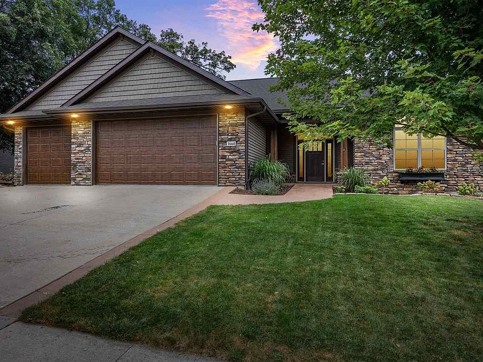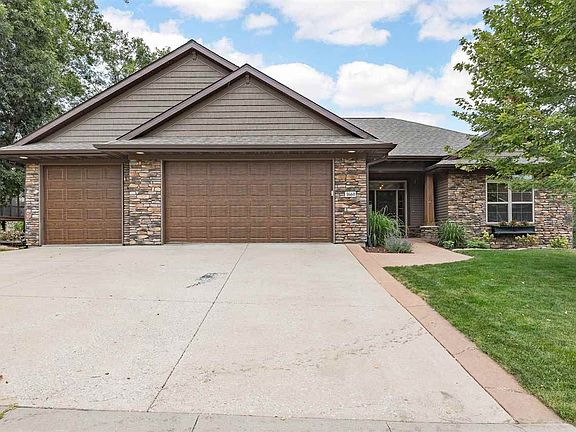 Wooded ranch home at the end of a quiet cul-de-sac in Cedar Springs. Warm and inviting, the open-concept design features 13-foot vaulted ceilings, rich wood floors, and fresh-painted walls. From the foyer, the living room opens to tree-lined views, anchored by a cozy fireplace with built-ins. The kitchen features brand new GE stainless steel appliances, including a combination microwave/second oven, granite countertops, a center island, and a walk-in pantry. A sliding door leads to a fully refinished deck and screened porch with new screens. Just off the dining area is a private study with built-ins. The primary suite includes a dual-sink vanity, an 8-foot tiled shower, and a large walk-in closet that connects to the laundry room, which can also be reached through the mudroom. The walkout lower level is designed for entertaining. Large family room, 2nd fireplace, 11x14 wet bar with fridge, two bedrooms, full bath, and extra storage space. Outside, enjoy a covered patio that extends to an open area with a stone firepit, surrounded by mature trees, new sod, and expanded green space. Minutes to Coralville Lake, restaurants, and a short distance to the elementary school. Recent updates include partial roof and gutter replacements with guards after storm damage, along with a new garage entry door. New dishwasher in 2023.