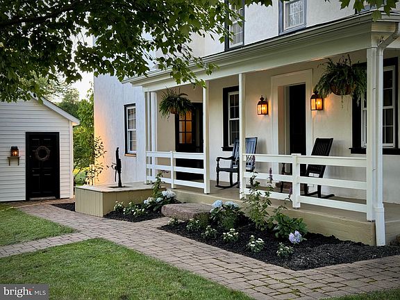 Welcome home to 1660 St. Peter’s Road, a one-of-a-kind 18th-century farmhouse seamlessly blending historic charm with modern luxury in the Owen J. Roberts School District. Situated on two picturesque acres, this beautifully expanded home overlooks a private lake and the lush, tree-covered hillsides of Coventry Woods Preserve. Step inside to a welcoming foyer with wide-plank hardwood floors, deep windowsills, and timeless millwork. The main level offers an elegant formal living room with a gas fireplace and an inviting dining room with exposed beams, a second fireplace, and French doors leading to a spacious deck with a retractable awning—perfect for outdoor dining. The gourmet kitchen is a chef’s dream, featuring handcrafted cabinetry, granite countertops, a downdraft gas range and a wine fridge. Access the covered side porch through the kitchen or through the charming Dutch door in the adjoining cozy family room with a wood-burning fireplace and a second set of stairs to the bedroom level. A butler’s pantry with beverage refrigerator and wet bar, powder room, and laundry area complete this level. Upstairs, the primary suite boasts vaulted ceilings, exposed beams, a walk-in closet, and a sun-filled en suite bath with a soaking tub and stall shower. Down the hall, three additional bedrooms include one with its own private bath, while the others share a well-appointed hall bath. Outside, the grounds offer endless possibilities. A multi-level deck and paver patio with a built-in firepit provide breathtaking views of the preserve. A detached two-car garage includes a walk-up attic, ready for storage or future studio space. The historic summer kitchen, complete with a fireplace and cable, is ideal for an office or entertainment space, while a large farm shed adds extra storage. Enhanced with UV water treatment, a backup generator, and modern conveniences throughout, this exceptional home is a rare blend of history, character, and contemporary comfort. Make your appointment today for a private tour or attend one of the open houses.