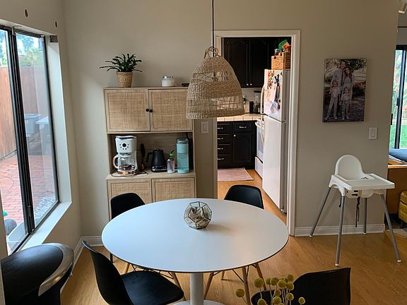 GATED NEIGHBORHOOD. Walk to shopping, grocery stores, Starbucks and restaurants & drive 3 miles to world famous Moonlight Beach. Vaulted ceilings in Living Room & Master bedroom. Fireplace in Living Room. Lovely backyard with privacy includes beautiful landscaping, brick patio and grass lawn. It's perfect for gatherings, family and small pets (dog/cat). House is located at the end of a cul-de-sac limiting the amount of drive by traffic. Two car garage with washer & dryer. All new stainless steel kitchen appliances installed in January 2025. Neighborhood is best in class for amenities, featuring a pool, hot tub, gazebo, playground, tennis & pickle ball courts. In walking distance to Flora Vista elementary and less than 5 miles away from San Dieguito High School Academy and La Costa Canyon High School. Rent includes HOA dues, water bill and twice a month landscaping services. No Smoking, small dogs allowed (larger dog allowed as an exception pending interview approval),