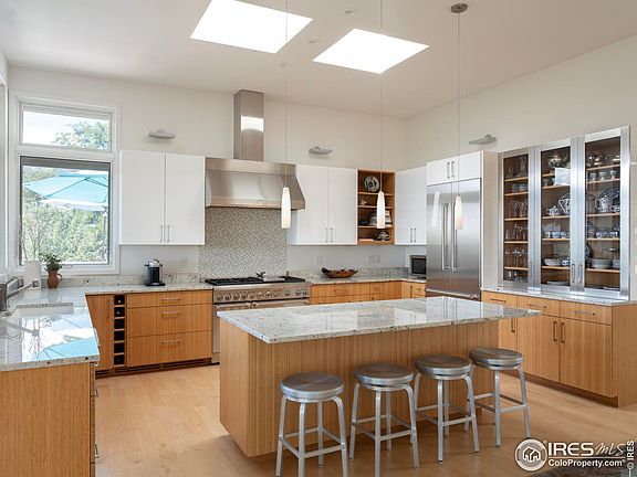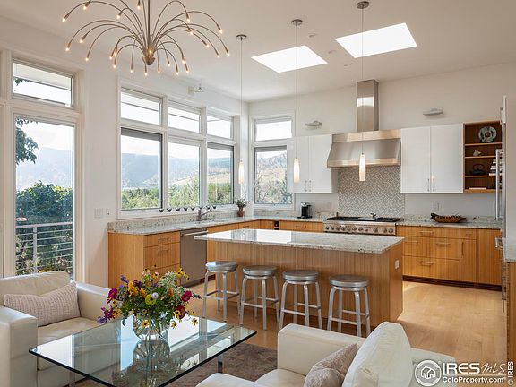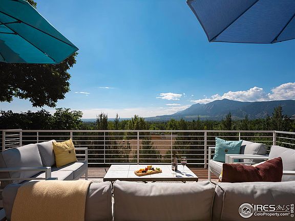 This elegant home is situated on a private cul de sac location. It has 180 degree views across the Boulder valley and along the foothills to the Flatirons and beyond. Located within easy walking distance to Foothills trail system, restaurants, bakery and Lucky's Grocery. The original mid-century modern home has had a complete and respectful remodel with high quality finishes, and the addition of two bedroom suites. The open floor plan has an abundance of natural light from windows that look out to expansive views. The chef's kitchen with professional appliances has a large island for prep and serving. The deck and patio areas are excellent for entertaining, particularly on the Fourth of July, when you can see multiple fireworks displays across the county. The main floor primary bedroom has two walk-in closets and a 5 piece bath with a soaking tub. There is a quiet office on the main level which provides good work from home privacy. The guest suite is tucked away on the lower level with French doors that open onto the verdant backyard. The spacious laundry room has a utility sink, lots of storage and room for crafting. Triple pane windows with integral shades for energy conservation.