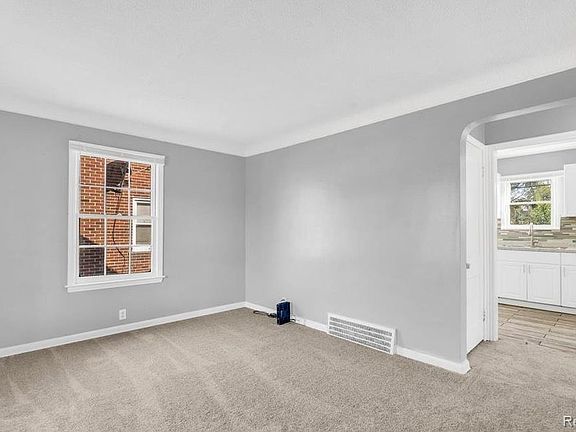 Charming brick bungalow on a spacious corner lot in Detroit! This home features 3 bedrooms, 1 full bath, and a bright kitchen with white cabinetry, decorative backsplash, and wood-style floors. Two bedrooms are located on the entry level with a large upper bedroom offering loft-style space. The full basement provides excellent storage or finishing potential. Additional highlights include a detached 2-car garage, included appliances (refrigerator, washer, dryer), and a generous corner lot. Conveniently located near Kelly, 8 Mile, and State Fair with easy access to shopping, dining, and major freeways. Vacant and available for immediate occupancy!
